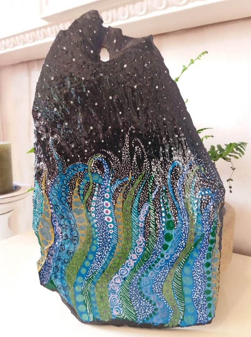 I know my pieces have gone to good homes, but I still think about them often. So here is a wee collection of much-loved paintings, stones and slates which have been sold, but not forgotten (click on the picture to see a bigger image).